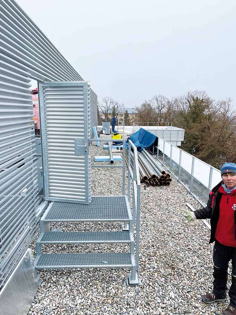 Geländer (ZinCo) und Seilanlage (ABS), , Attika-Abdeckung (2 mm), Alu farbbeschichtet auf Halter